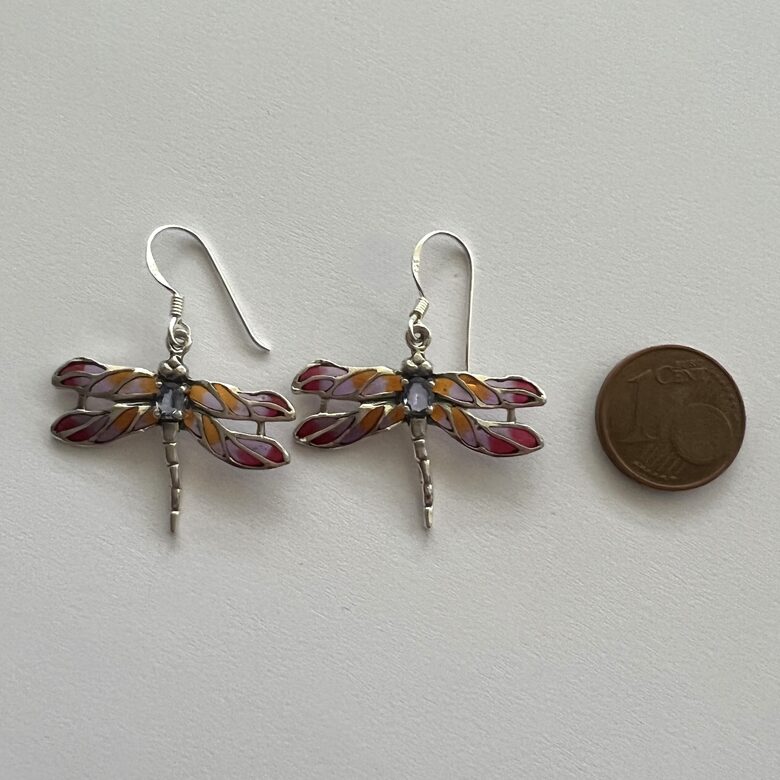 Gorgeous look, the light goes through the stained glass, very feminine earrings, feel so light-minded and easy-going as a dragonfly. In addition, dragonfly is a symbol of immortality.